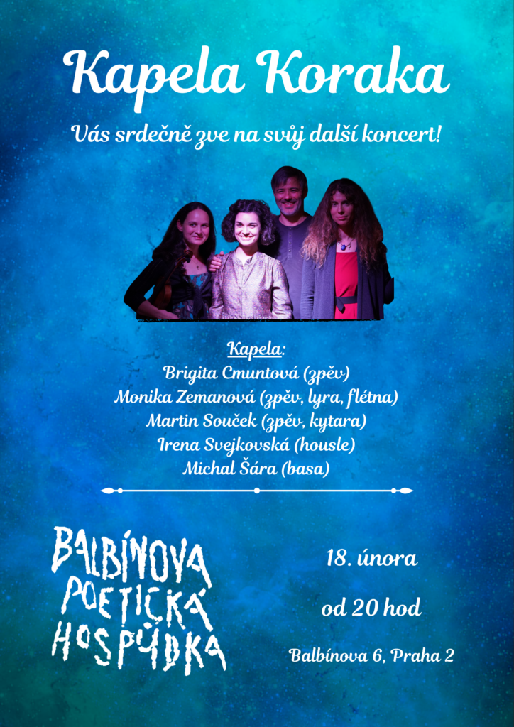 Rádi bychom Vás pozvali na náš další koncert, tentokrát do prostorů Balbínovy poetické hospůdky. Zahrajeme 18. února od 20:00, vstupné na místě je 200 Kč.